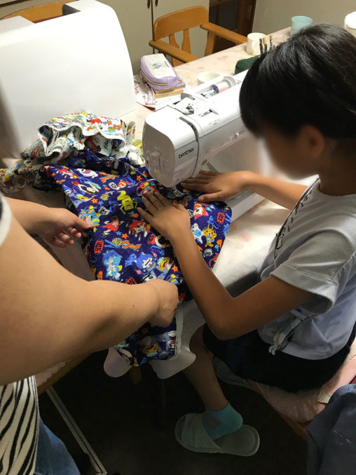 「早速、子供たちと一緒に最新式のミシンで巾着袋を作りまし…