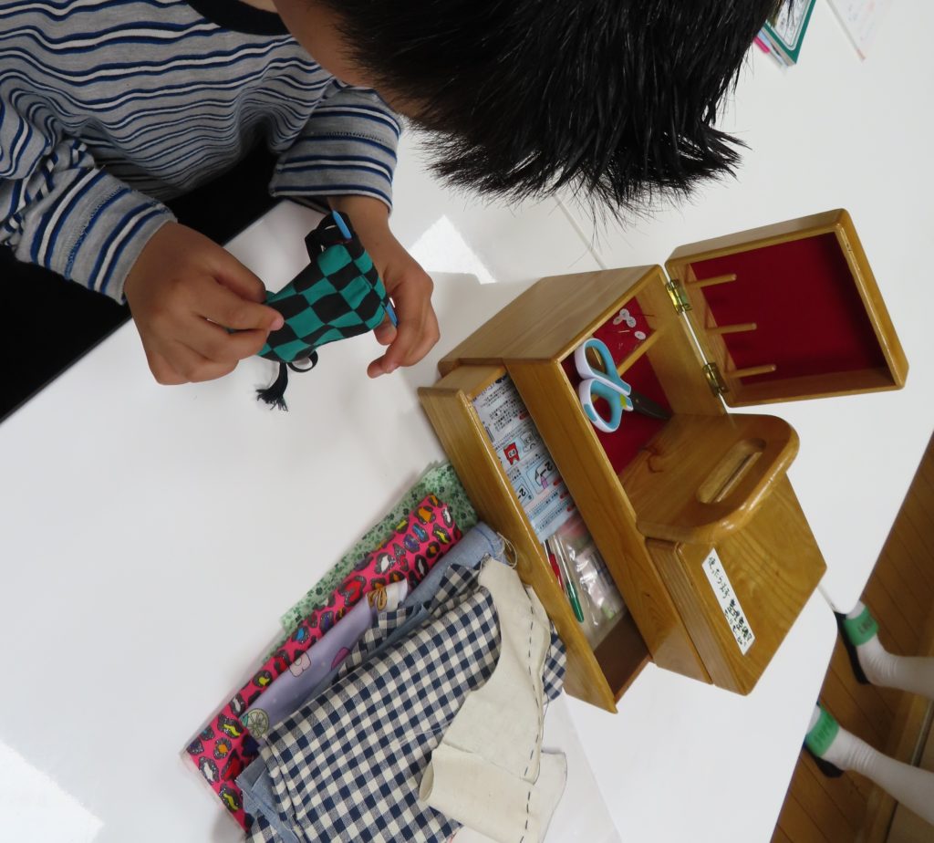 ”ミシンは、職員と子どもでマスクを作成しました。”