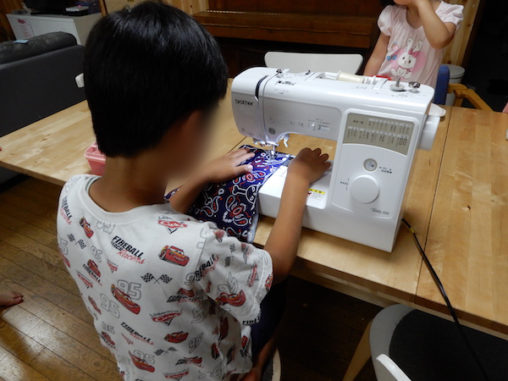 「早速、子供たちと一緒に最新式のミシンで巾着袋を作りまし…